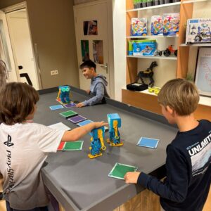 Ook werd er fanatiek gestreden in het Switch-toernooi en maakten we kennis met Marty de robot, een echte publiekslieveling! En alsof dat nog niet genoeg was, maakten we onze eigen podcast, programmeerden we met Lego Education en stuurden we de Ozobots behendig over hun route.